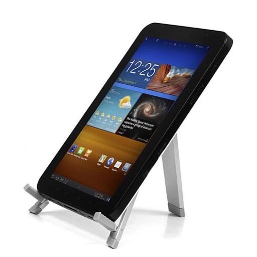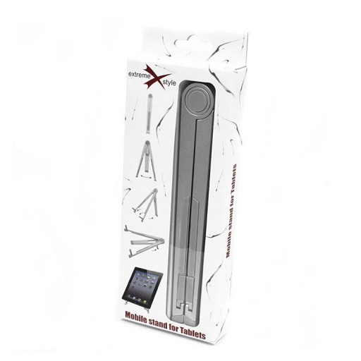 Wykonana z wysokiej jakości aluminium, uniwersalna podstawka przenośna do różnych modeli Tabletów. Podstawka posiada gumowe wykończenia, zapobiegające ślizganiu się oraz chroniące Tablet przed porysowaniem. Umożliwia postawienie urządzenia pod dwoma różnymi kątami. Niewielkie wymiary złożonej podstawki sprawiają, że jest ona wygodna w transporcie. Znakomicie sprawdza się w czasie podróży pociągiem lub samochodem.