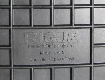 RIGUM dywaniki gumowe. Idealnie dopasowane do marki, modelu i wersji. Wykonane z najwyższej jakości gumy, odporne na uszkodzenia mechaniczne i chemiczne. Są elastyczne, mocne i twałe, nie brudzą obuwia i nie wydzielają przykrego zapachu. Fotografia przedstawia oferowany artykuł.