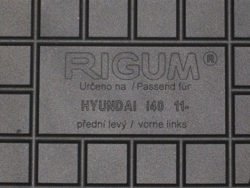 RIGUM dywaniki gumowe. Idealnie dopasowane do marki, modelu i wersji. Wykonane z najwyższej jakości gumy, odporne na uszkodzenia mechaniczne i chemiczne. Są elastyczne, mocne i twałe, nie brudzą obuwia i nie wydzielają przykrego zapachu. Fotografia przedstawia oferowany artykuł.