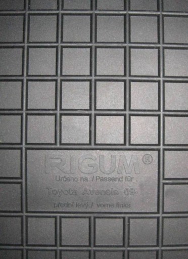 RIGUM dywaniki gumowe. Idealnie dopasowane do marki, modelu i wersji. Wykonane z najwyższej jakości gumy, odporne na uszkodzenia mechaniczne i chemiczne. Są elastyczne, mocne i twałe, nie brudzą obuwia i nie wydzielają przykrego zapachu. Fotografia przedstawia oferowany artykuł.