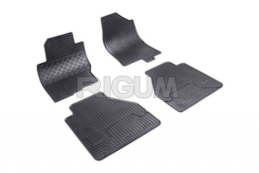 RIGUM dywaniki gumowe. Idealnie dopasowane do marki, modelu i wersji. Wykonane z najwyższej jakości gumy, odporne na uszkodzenia mechaniczne i chemiczne. Są elastyczne, mocne i twałe, nie brudzą obuwia i nie wydzielają przykrego zapachu. Fotografia przedstawia oferowany artykuł.
