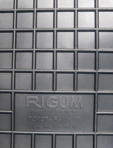 RIGUM dywaniki gumowe. Idealnie dopasowane do marki, modelu i wersji. Wykonane z najwyższej jakości gumy, odporne na uszkodzenia mechaniczne i chemiczne. Są elastyczne, mocne i twałe, nie brudzą obuwia i nie wydzielają przykrego zapachu. Fotografia przedstawia oferowany artykuł.